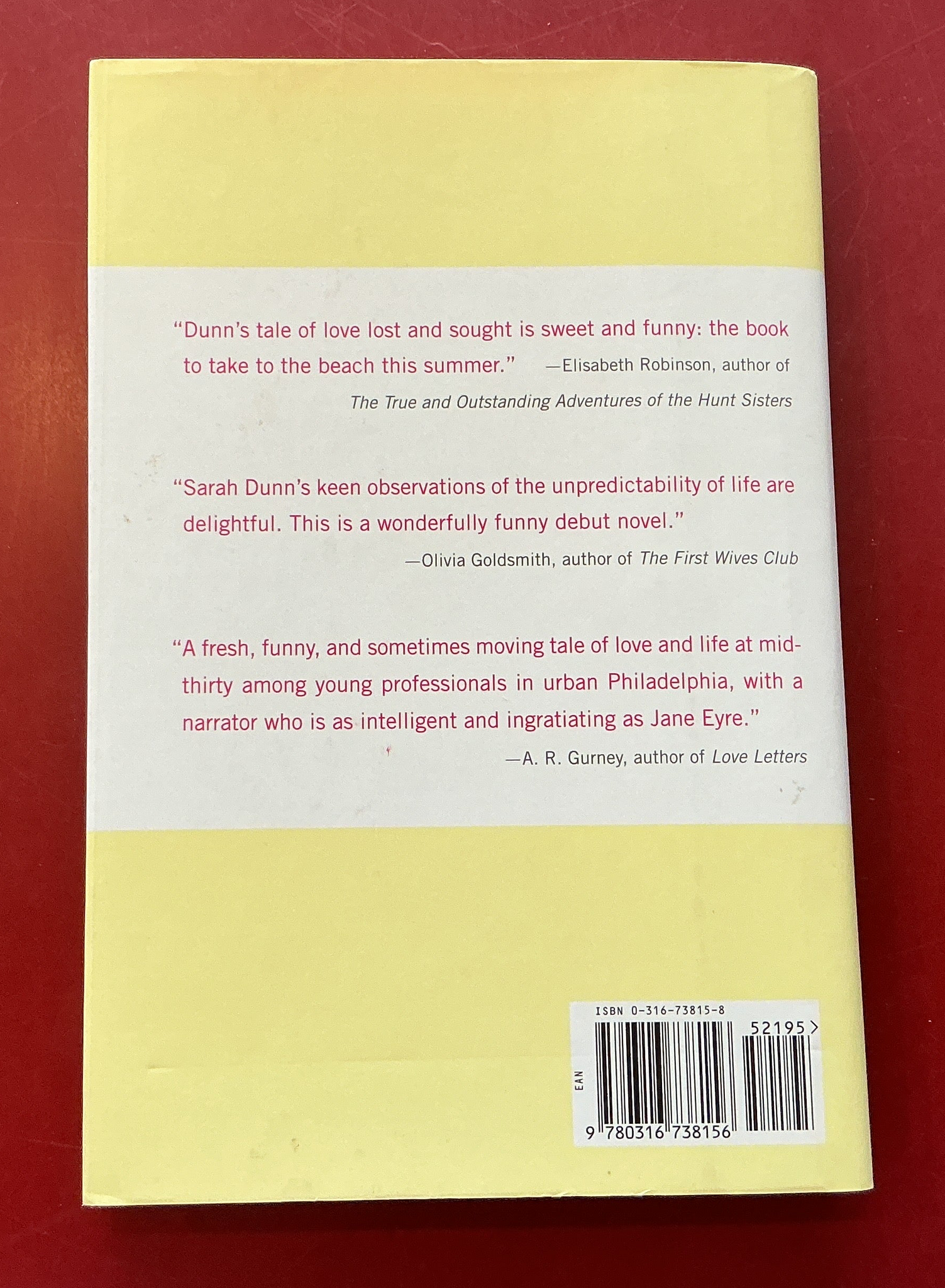 Alison Hopkins is firmly, undoubtedly, and undeniably in love. She and Tom live together, they send wedding gifts as a unit, and, most important, they’re happy together—until the evening Tom goes out in the middle of a dinner party to buy some mustard and doesn’t come back. He calls Alison to say that he has fallen back in love with his ex-girlfriend Kate, the kind of woman about whom may say rhapsodically, “She’s like a drug.” How can Alison compete with that? She had always feared that Tom’s looks would land her in trouble—having a handsome boyfriend is like owning a white couch, an invitation to disaster,